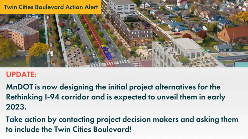 Take action by contacting MnDOT & Rethinking I-94 decision makers about the upcoming project alternatives.