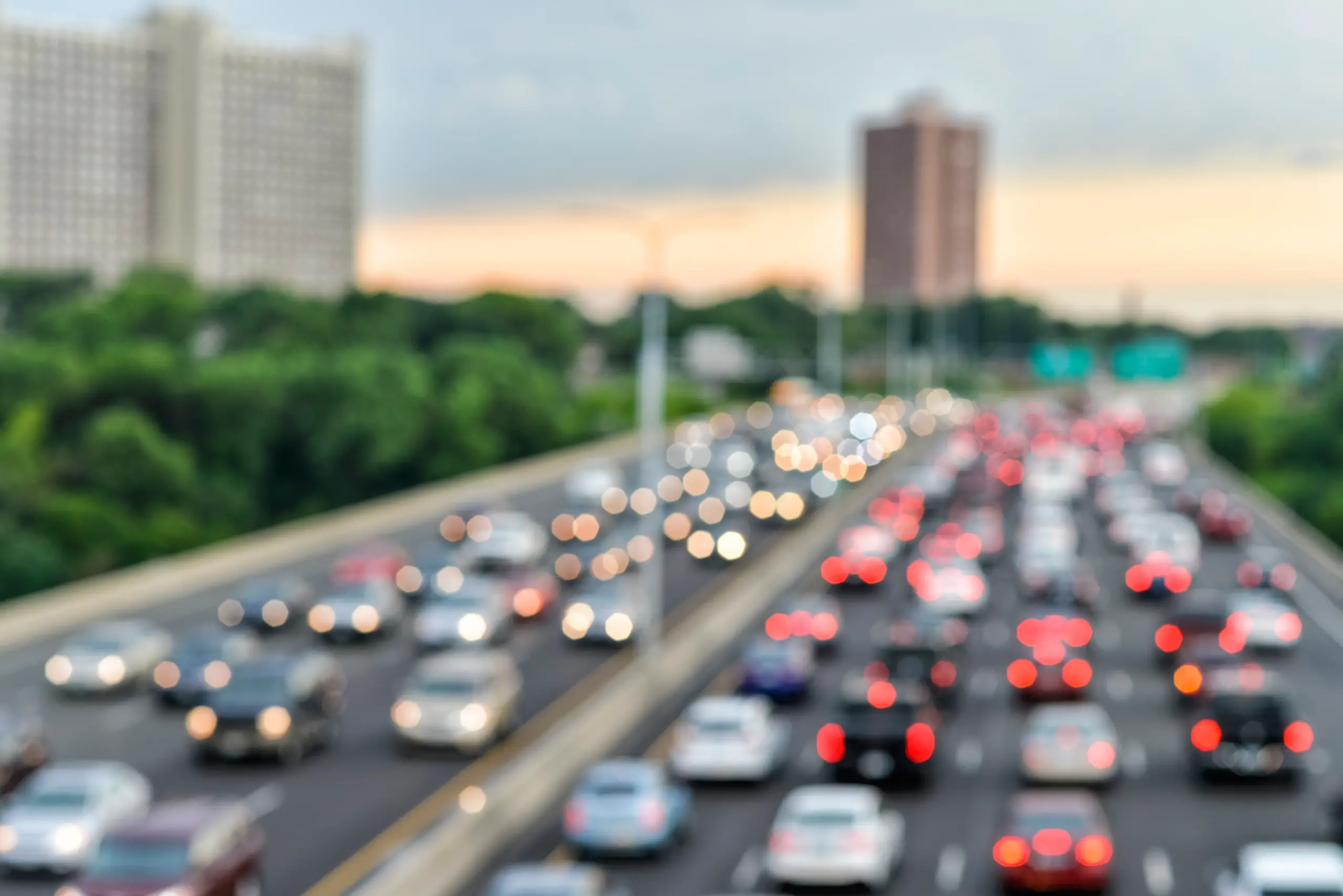 blurry image of cars on i-94 bridge, with brake lights and headlights