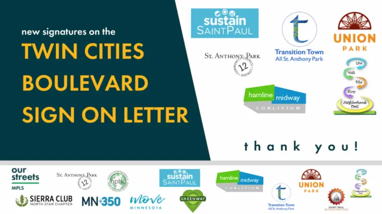 Six new community organizations have signed on to the Twin Cities Boulevard sign-on letter.