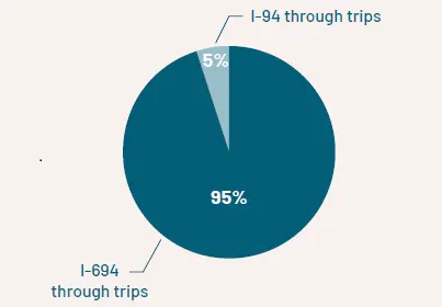 Today, only a small portion of through traffic uses I-94 in the project area. Regional through traffic is served primarily by I-694 and the Twin Cities outer loop highway network.