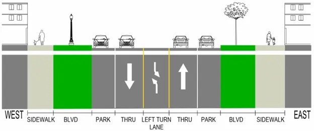 - Does not include a center median north of 24th Street, which prevents speeding and illegal passing while also providing a refuge spot for pedestrians.