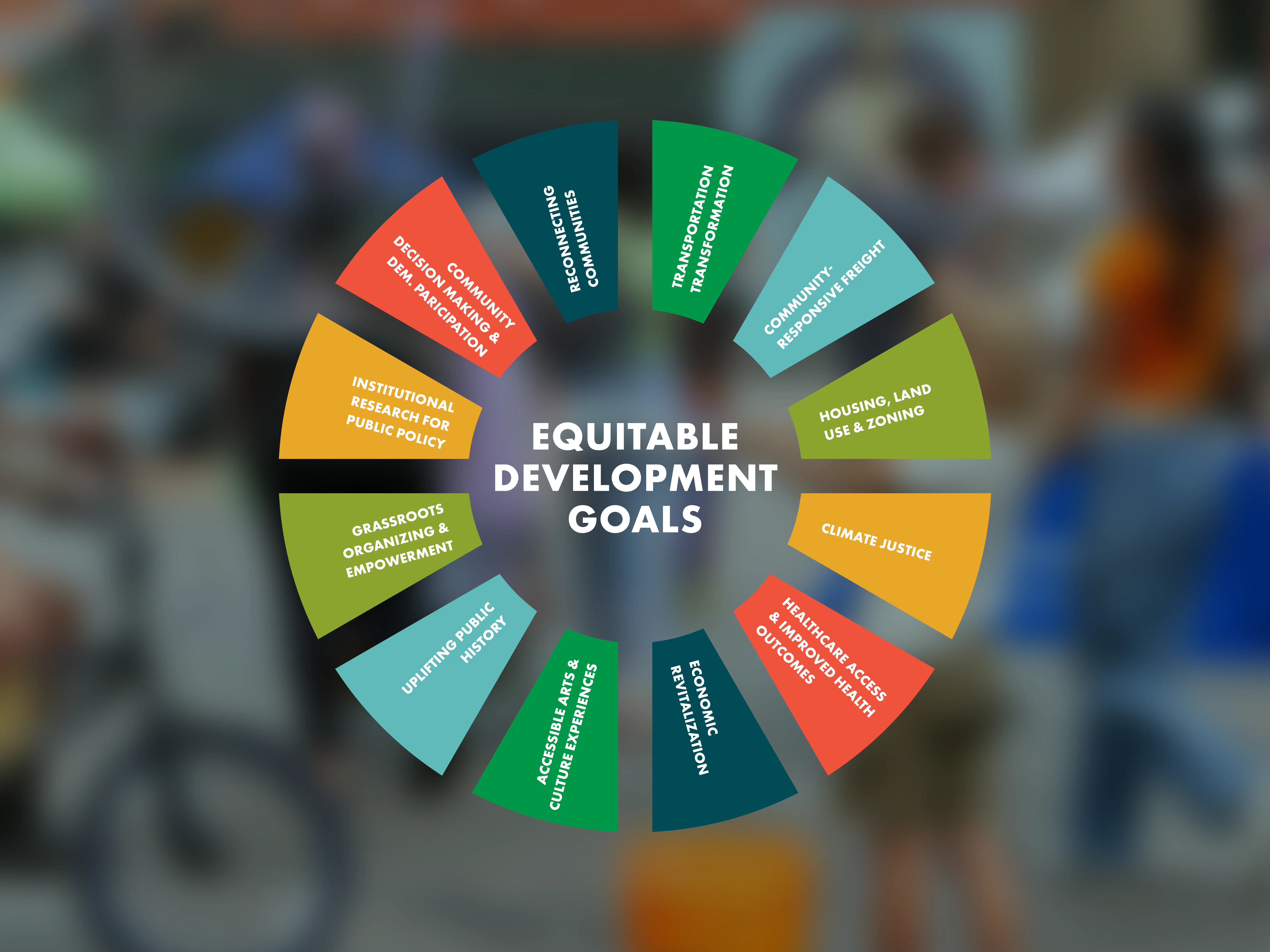We’ve outlined the vision. We’ve explained why this work — and this approach — is necessary. Now, here is how we drive change. Our Equitable Development Goals provide a clear, actionable roadmap for building just, connected, and thriving communities. They are rooted in lived experience, informed by years of organizing and coalition work, and designed to guide transformation across infrastructure, environment, economy, health, and democracy.