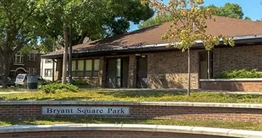 City park featuring a hillside amphitheater with summer concerts, a winter ice rink & sports fields.